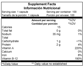 INDICACIONES: Adultos – tomar una (1) o dos (2) cápsulas diarias, como suplemento dietético, preferiblemente con una comida.